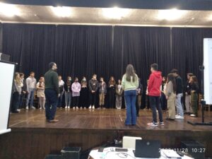 The students worked, along with their teachers under the facilitation of the OCEAN NGO trainer, Dimitris Katsidoniotis. Starting from the writing of short stories, participating in Augusto Boals’ and other theatrical improvisation and bond-strengthening techniques, as well as pedagogical creative methodologies, students worked in 5 random mixed (mixed students from all countries along with mixed teachers) teams, out of a total of 52 people, and they finally created 5 minutes’ performances, along with the Jokering-discussion, based on newspaper articles that they had already chosen, concerning Climate Change. All performances were recorded.